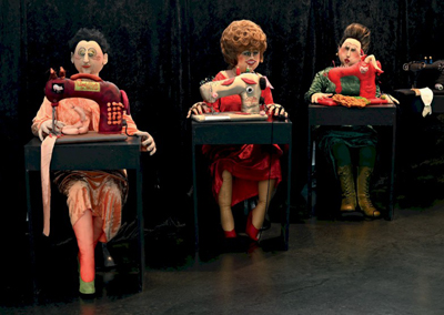hier gar nichts. Genähte Kunst-Menschen sind in Szenerien arrangiert.