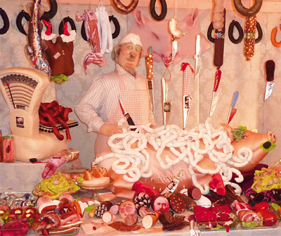 'Alraunes wundersames Weihnachtsfest' ist im Weihnachts-Schaufenster des Spielzeug Welten Museum Basel bis zum 12. Januar 2014 zu bewundern Spielzeug Welten Museum Basel 16. 11. 2013 bis 12. 01. 2014 Museum, Shop und Restaurant täglich von 10 bis 18 Uhr Steinenvorstadt 1, CH-4051 Basel www.spielzeug-welten-museum-basel.ch ![]() Mai-Oktober 2013: Eine bizarre Laden-Scheinwelt mit schaurig schönen Wurst- und Fleischobjekten samt Metzgern und Fleischereifachverkäuferin. In der Großbayerstube